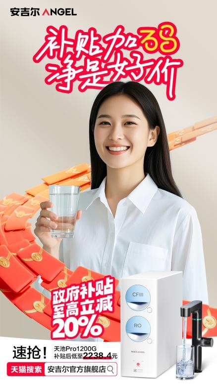 為了讓更多用戶享受品質(zhì)凈水生活,守護(hù)家庭用水健康,3月7日20點(diǎn)-3月8日20點(diǎn)起,安吉爾將準(zhǔn)時(shí)開啟3.8福利活動(dòng),購機(jī)可享政府補(bǔ)貼,購買凈水類產(chǎn)品可至高省20%,還能疊加品牌專屬禮遇,雙倍補(bǔ)貼凈享好價(jià)。