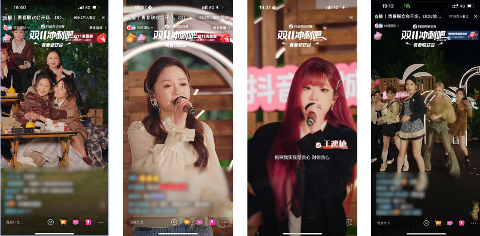 在這種情感消費(fèi)的趨勢(shì)下,抖音電商的《雙11沖刺吧·青春聯(lián)歡會(huì)》直播以青春回憶為主線,召集具有國(guó)民認(rèn)知度的競(jìng)技類綜藝天團(tuán)成員、全民海選的時(shí)代音樂(lè)偶像、以及深受 Z 世代喜愛的抖音達(dá)人,用一場(chǎng)跨越時(shí)光的重聚,精準(zhǔn)觸動(dòng)了三代用戶的情感開關(guān)。