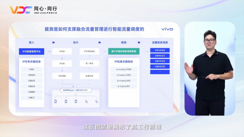 vivo互聯網撥測監控負責人莫瀚詳細介紹了vivo撥測的現狀、能力及如何支持流量調度。他指出,撥測在vivo的核心使命是為所有業務和產品的高可用保駕護航。在實踐中,通過構建一個覆蓋全球,以自有真實手機作為撥測載體的探測網絡,成功為智能調度提供了數據基石。在此之上,通過輸入,執行,處理,應用的閉環流程,vivo將原本被動,依賴經驗,效率低下且高風險的人工調度動作,升級成為以數據驅動的智能主動調度體系,不僅釋放了運維人力,效率和可靠性方面更得到極大提升。